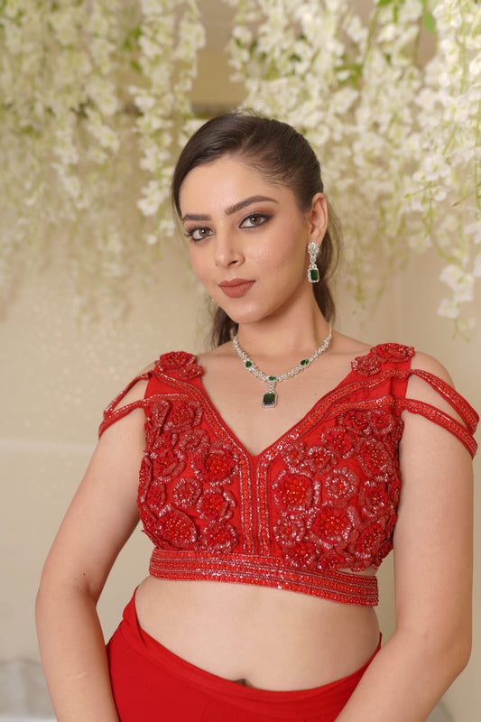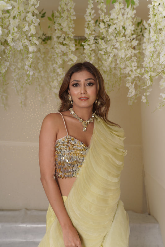 Carol Leaf Blouse with Drape Saree